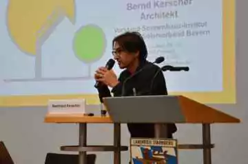 Bernd Kerscher vom Sonnenhaus-Institut e.V. schilderte anhand von Praxisbeispielen welche technischen Rahmenbedingungen bei der Auslegung von Solarthermieanlagen und der Einbindung in das Heizungssystem eines Sonnenhauses zu beachten sind. Im zweiten Teil seines Vortrags stellte er ein kürzlich in Starnberg realisiertes Holzhaus vor, welches nach Ende der Vorträge besichtigt werden konnte. Fördermöglichkeiten und Voraussetzungen für Häuser im KfW- und EnEV-Standard stellte Arne Kruft von der EKG Energie vor. Im Unterschied zum KfW-Standard, untersuchte Stefan Kreidenweis, Bayerisches Landesamt für Umwelt, in der Lebenszyklusanalyse von Wohngebäuden verschiedene Gebäudestandards auf deren Primärenergiebedarf und Treibhausgaspotenzial bei Herstellung und Betrieb.